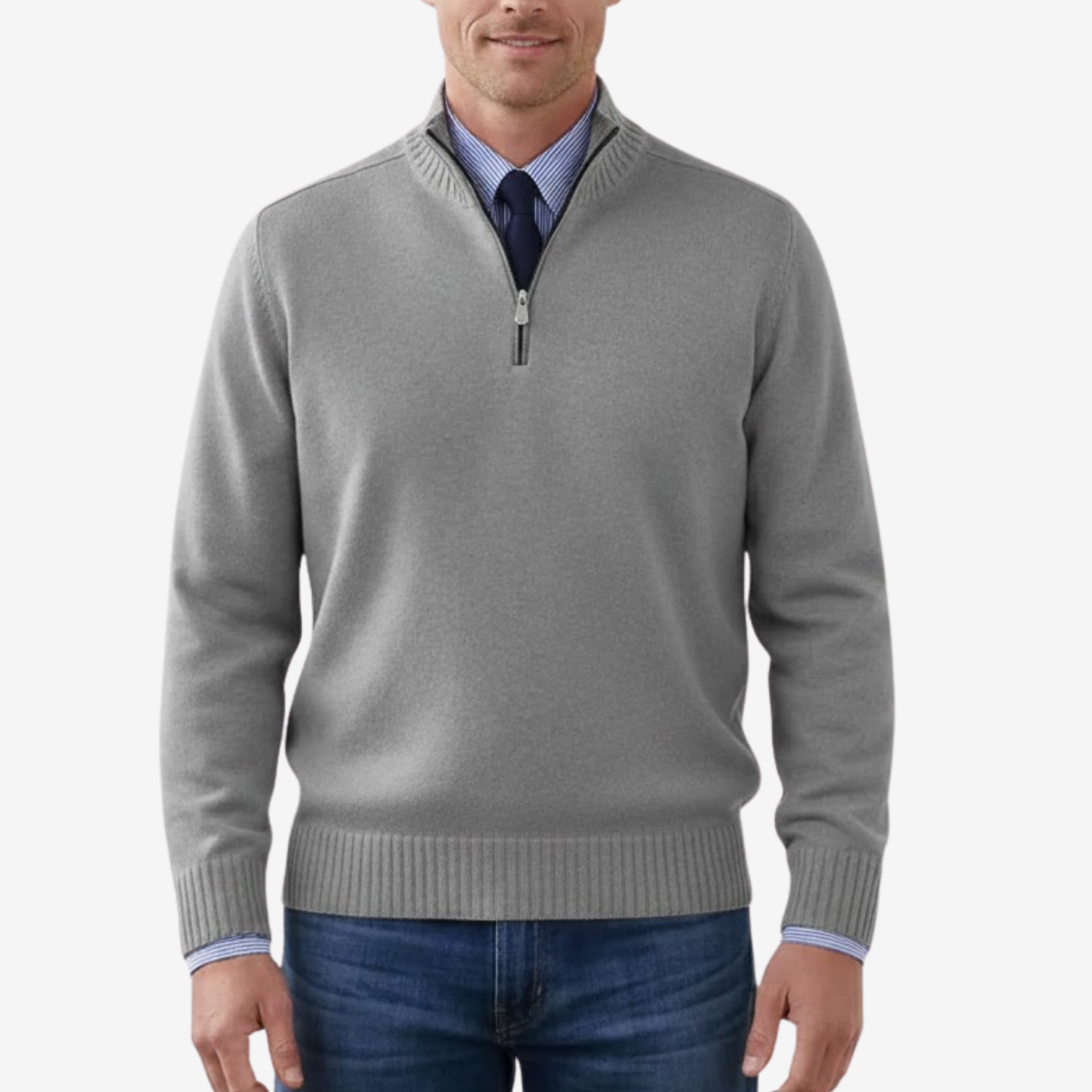 Textured Cotton Knit, Half-Zip Design, Clean Structured Fit