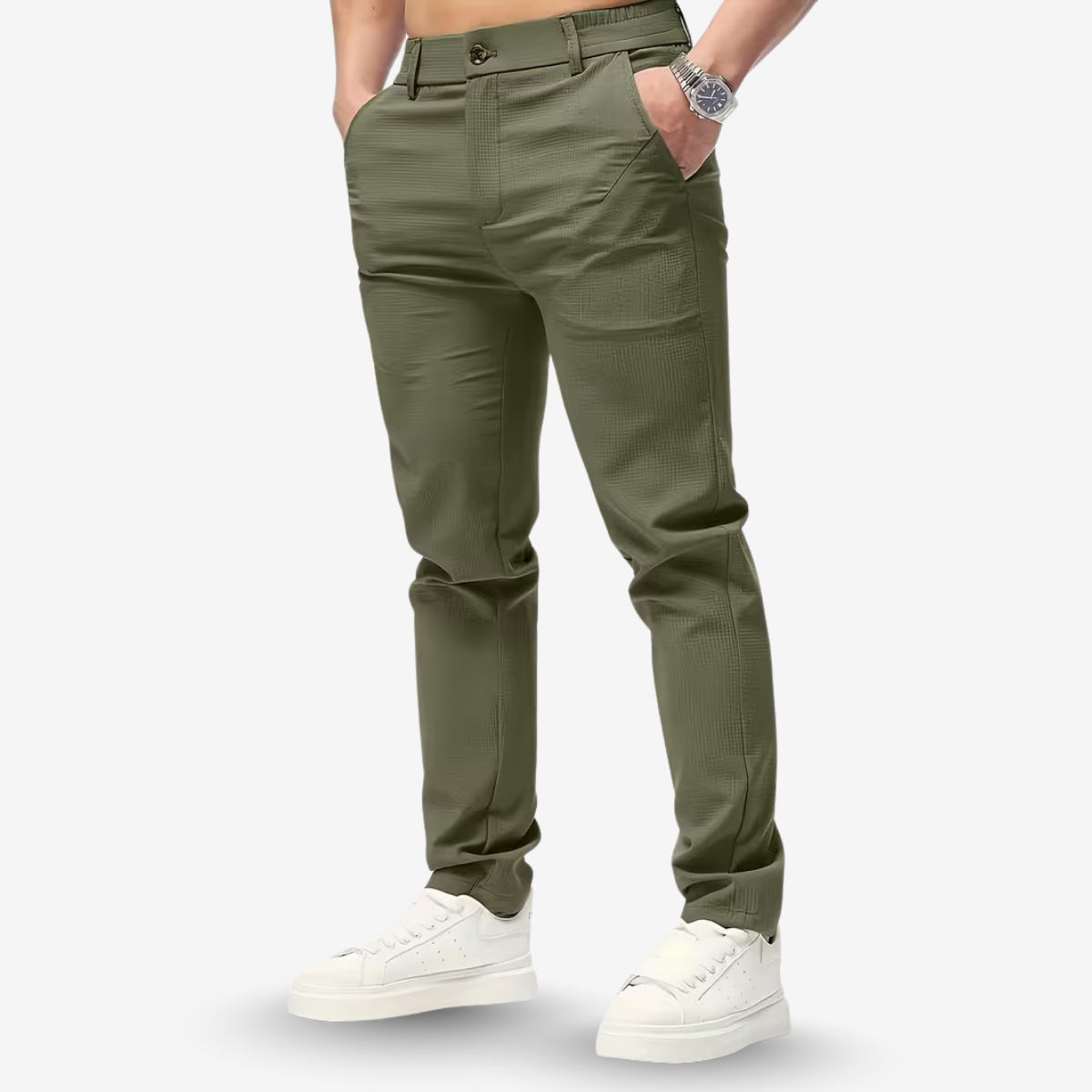 Keep your look simple and polished with the AURELLA | Men’s Cotton-Twill Casual Pants — a regular-fit design crafted for easy daily wear, smooth structure, and versatile styling. The solid-color finish and classic button detail make these trousers an effortless match for casual shirts, tees, or lightweight layers.