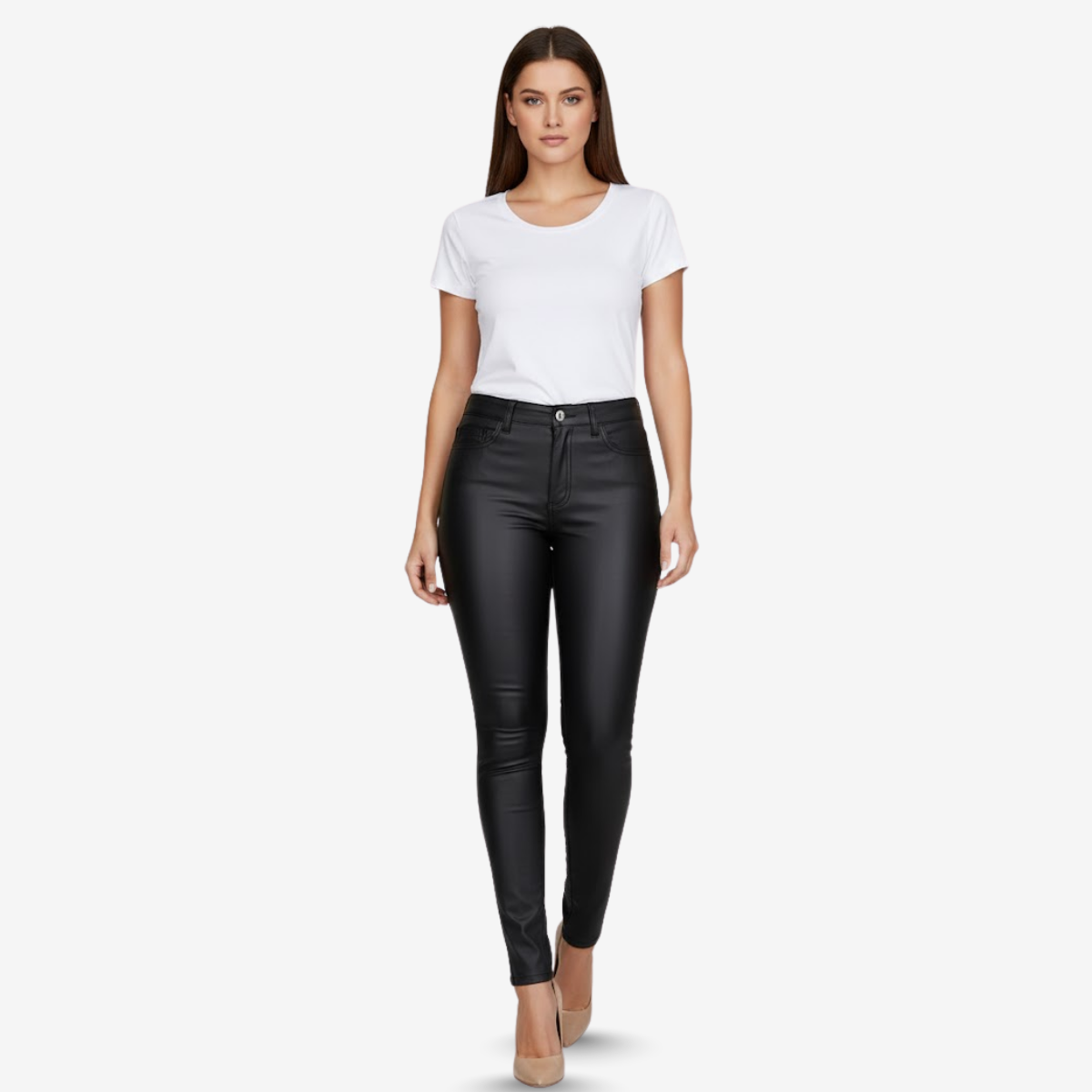 Refine your denim collection with the AURELLA | Women’s Cotton-Blend Coated Skinny Jeans — a mid-rise, stretch-enhanced design crafted for comfort, movement, and a polished streetwear look. The coated finish adds a subtle sheen that elevates everyday outfits.