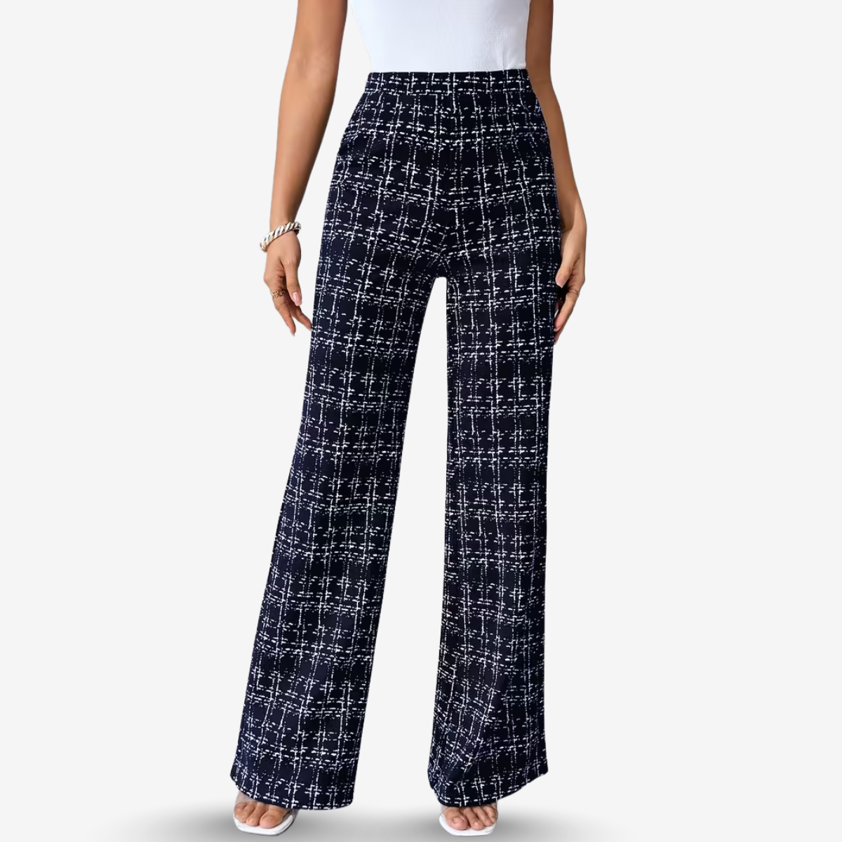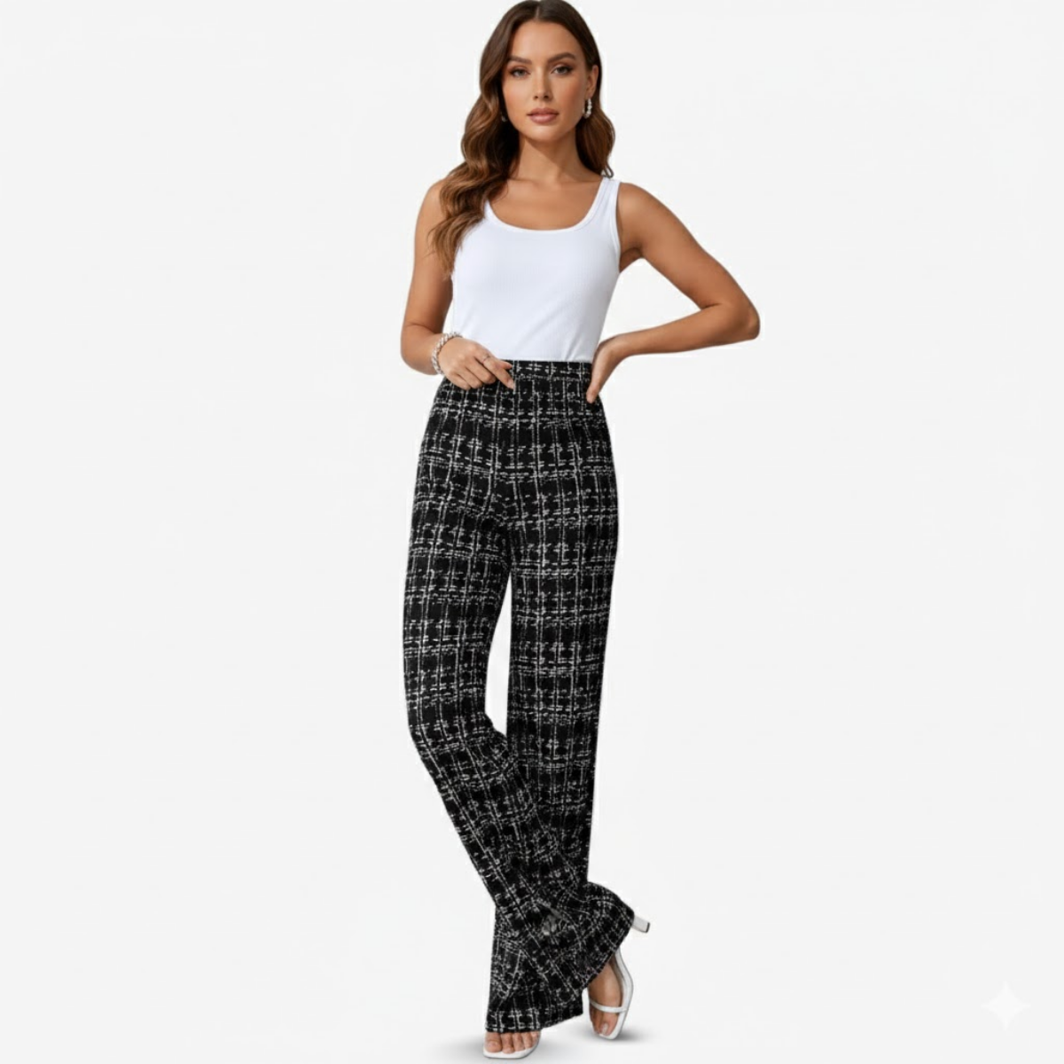 Refresh your casual wardrobe with the AURELLA | Women’s Viscose-Blend Plaid Flare Pants — a high-waist, stretch design crafted for easy movement, sleek styling, and everyday comfort. The black-and-white plaid pattern adds a bold, modern touch that pairs effortlessly with fitted tops or relaxed layers.